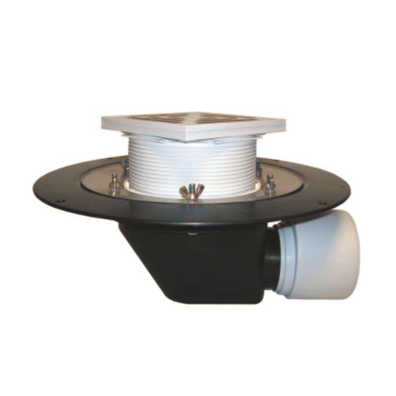 Receptorul pentru acoperis-terasa cu iesire orizontala, guler izolator, flansa din inox (centreaza – fixeaza membrana hidroizolatoare) si gratar, se utilizeaza pentru preluarea apelor pluviale de pe terase circulabile si dirijarea acestora catre instalatia de canalizare a cladirii. Corpul receptorului are perete dublu din PP ceea ce ii confera o termoizolare anticondens. -Inaltimea de instalare: 167mm. -Material: PP. -Parti componente: reductie DN110xDN75, flansa din otel inoxidabil, set 6buc. piulite fluture, set 6buc. piulite hexagonale, inel de reazem, gratar pentru frunze d150mm, suport pentru gratar cu prelungire 12 65mm, 148x148mm, gratar din otel inox 137x137mm, corp receptor termoizolant cu guler. -Debit [l/s]: 3,7 -Masa [kg/buc]: 1,9 -Clasa de incarcare: K3, 300kg -Conform EN 1253. Produsul se livreaza incluzand un capac de protectie anticontaminare la montaj. Conexiunea la instalatia de canalizare a cladirii se face prin sistemul mufa-garnitura in cazul tevilor din PP, iar in cazul tevilor din PEID prin sudura, utilizandu-se conectorul 46012075075 (pt. 75). sau 46012110110 (pt. 110). Se recomanda efectuarea a cel putin o curatare inainte de inceperea sezonului, sau, conform necesitatilor unei bune functionari a receptorului.